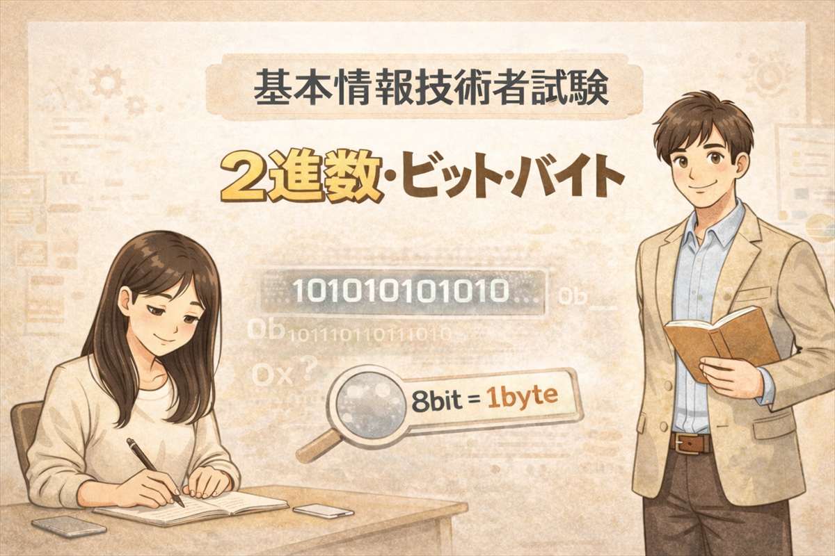 基本情報技術者試験において、2進数・ビット・バイトといった「内部表現」はすべての問題の土台です。一見とっつきにくいですが、「機械の都合」と「人間の工夫」という視点で整理すれば、確実に得点源にできます。