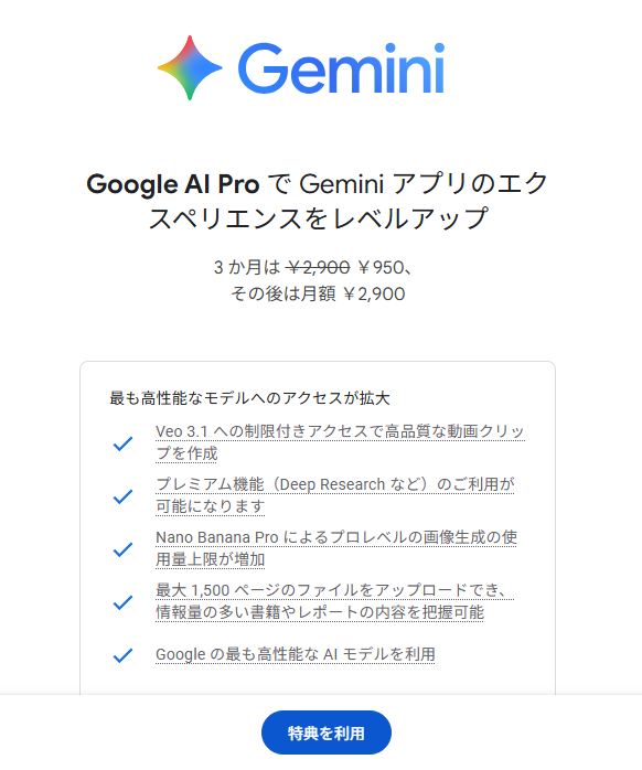 そんな不安を解消するために、今回は私が実際に Gemini (有料版)Google AI Proへアップグレードしたときの流れを、画面つき・初心者向けにまとめました。