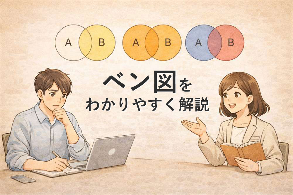 この記事では、数学的な定義よりも 「試験でどう見分けるか」 に重点を置いて、基本情報技術者試験に出てくるベン図を整理して解説します。