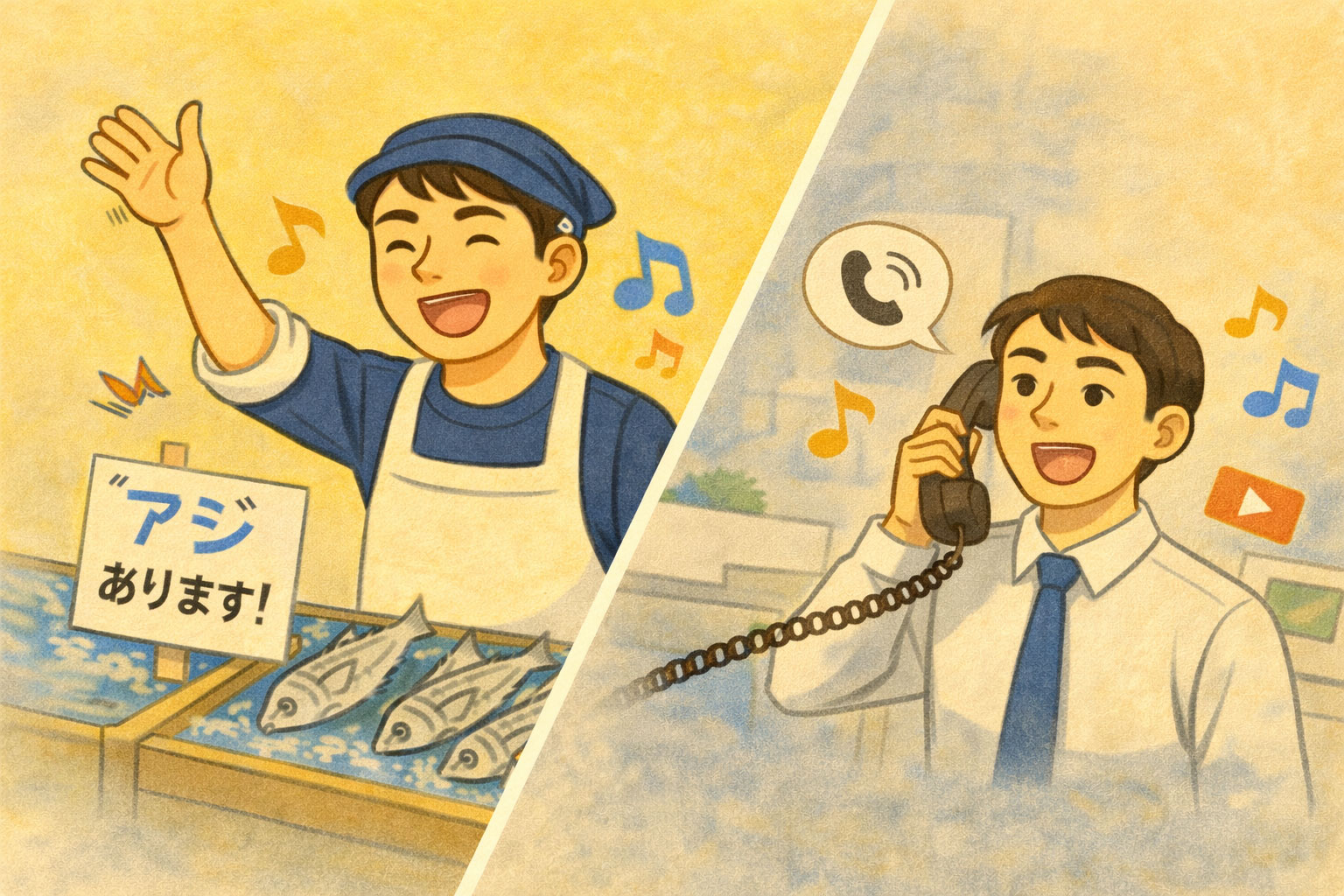 「サンマ安いよー!」と大声を張り上げる仕事です。